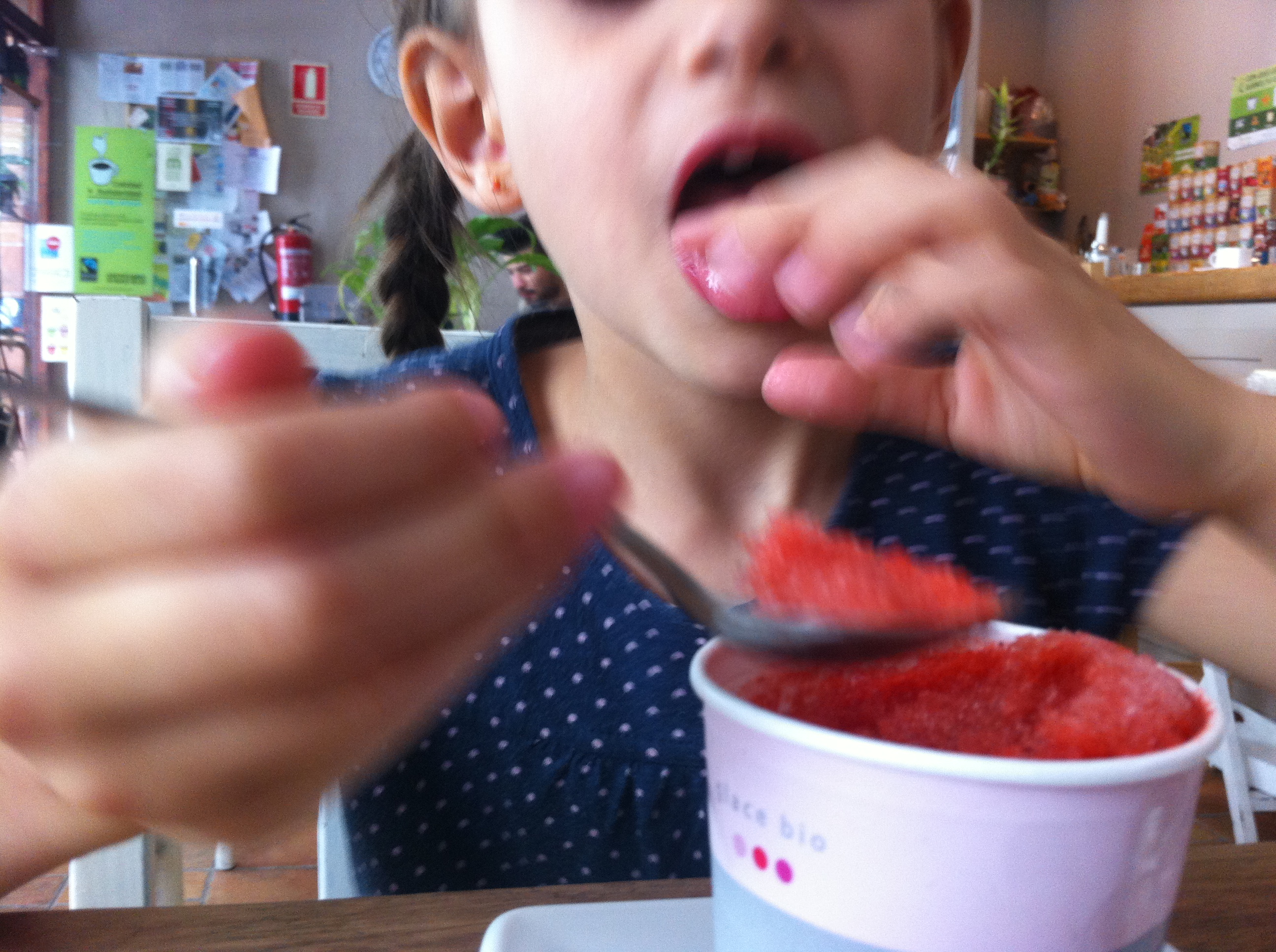 En Abonavida nos plantamos Julia y yo muy regularmente, y ella se zampa su helado mientras yo me tomo un café de cereales con leche ecológica de vaca. Eso sí que es una estampa bucólica. Lo disfrutamos muchísimo las dos y nos vamos a casa de muy buen humor.