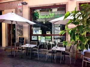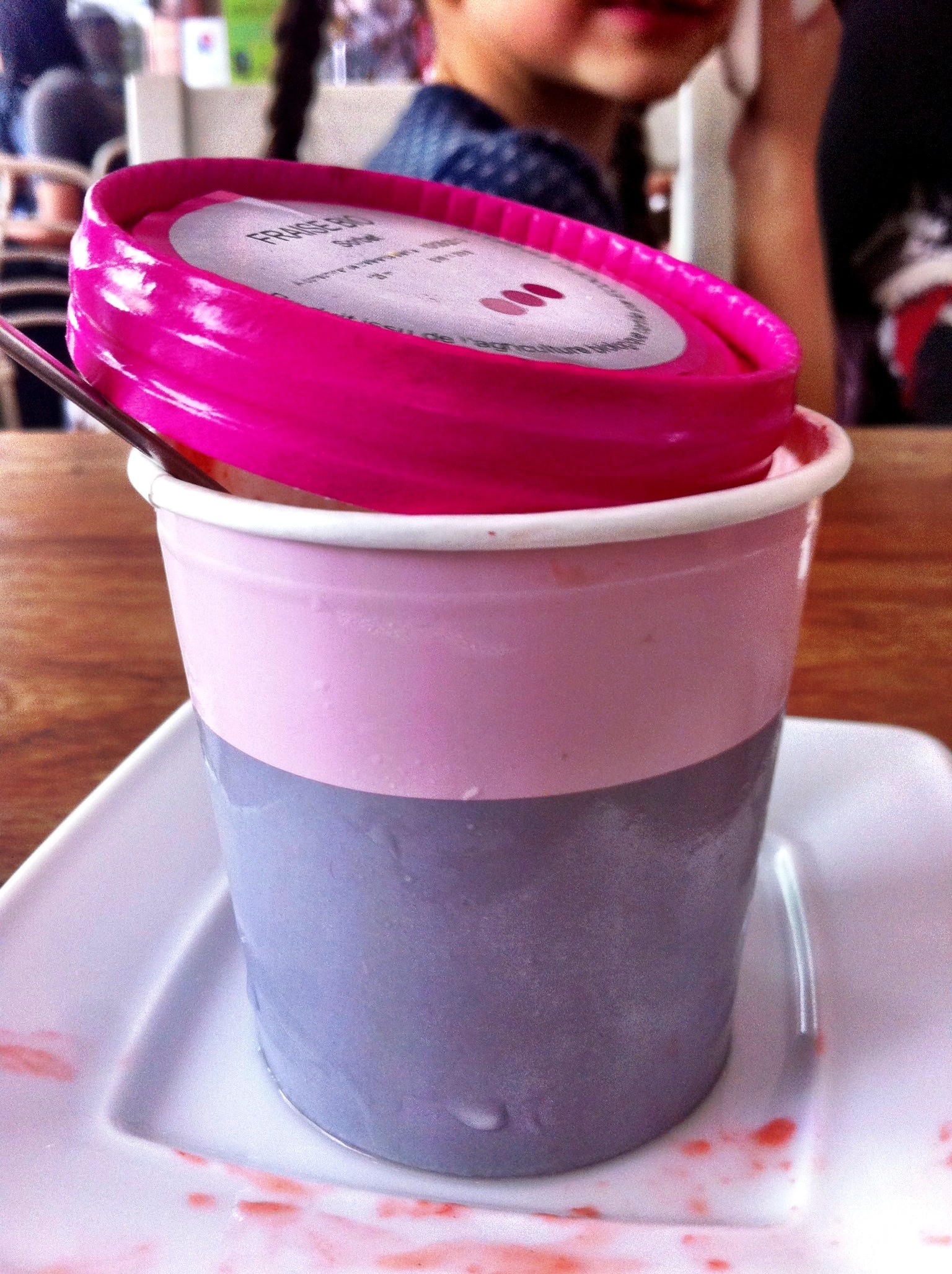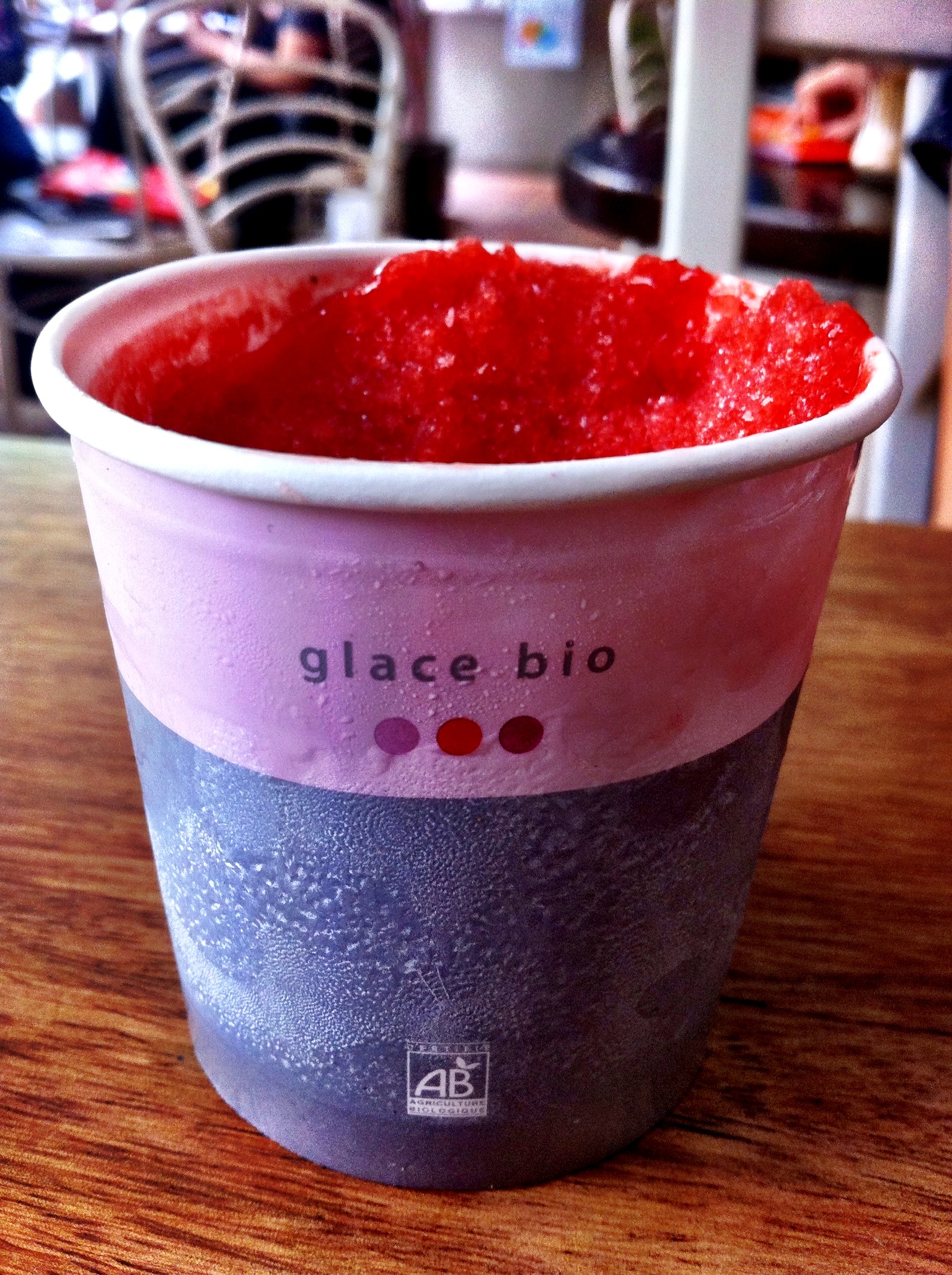 Uno de nuestro sitios preferidos es Abonavida, una agradable cafetería ecológica en pleno centro de Madrid, muy cerca de la plaza de Callao. Allí compramos la leche de arroz de Julia, porque tiene un pequeño mercado ecológico. La dueña, Muriel, es un encanto y tiene mucha paciencia con nosotras. Un día nos dijo que tenía unos sorbetes naturales y ecológicos buenísimos, pero yo estaba escéptica. Entonces me enseñó los ingredientes: puré de fruta, agua, azúcar de caña, jarabe de glucosa, zumo de limón y pectina de guisante. Efectivamente, no parecían tener nada sospechoso (los industriales, os aviso, no son aptos para alérgicos). Y además son exquisitos. Tienen de fresa, de frambuesa y de mango.